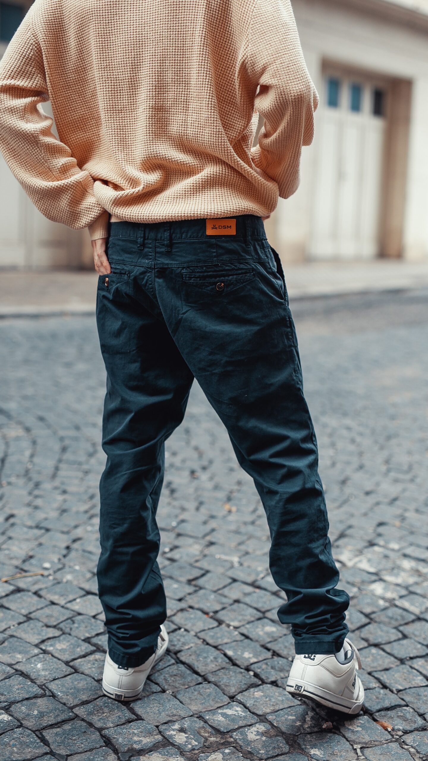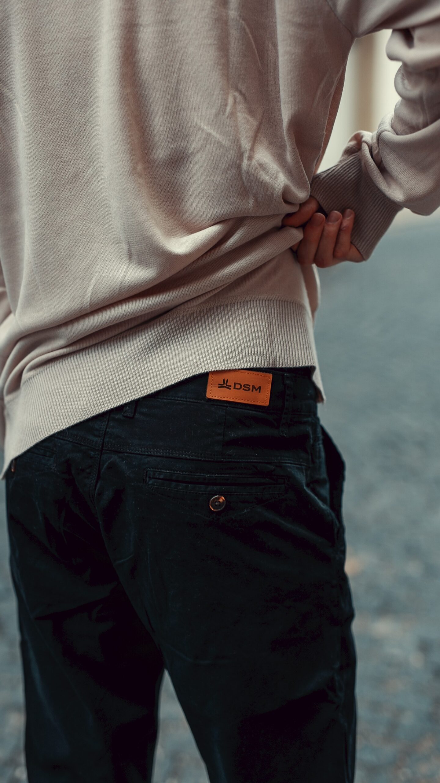 Diseñado para el día a día, el pantalón chino DSM está confeccionado en gabardina de alta calidad con un leve porcentaje de elastano que aporta comodidad sin perder estructura.